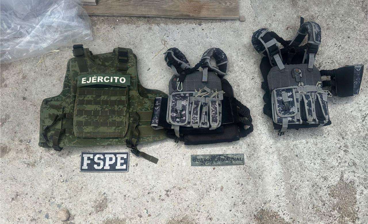 En el lugar fueron asegurados tres vehículos tipo pick up, uno con reporte vigente de robo en Apaseo el Alto, otro con placas de Texas y un Toyota Tacoma, además de dos motocicletas (Honda e Italika, esta última sin placas). También se localizaron un arma de fuego larga, un fusil, un cargador, ocho chalecos tácticos, cinco cascos tácticos, tres chalecos balísticos, tres cascos balísticos, artefactos ponchallantas y una gorra.
