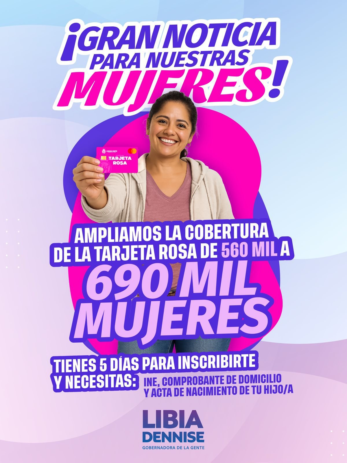 Gobernadora anuncia ampliación de la Tarjeta Rosa a 690 mil mujeres en Guanajuato