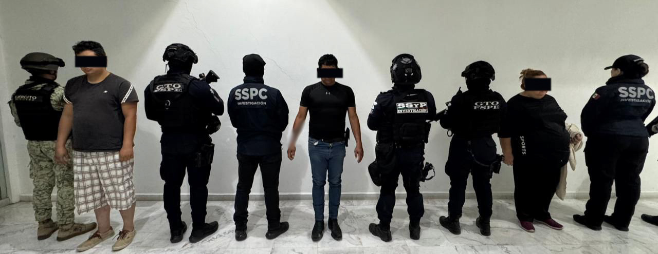 En el primer domicilio localizado en la zona urbana de Cortazar, se realizó la detención de tres personas: Agustín “N”, alias “Logan”, de 54 años de edad, originario de Cortazar, casado y con ocupación como comerciante; asimismo, Luis Antonio “N”, de 29 años, hijo del anterior; y Rubí “N”, de 48 años, originaria de Salamanca, propietaria de un restaurante en la región.