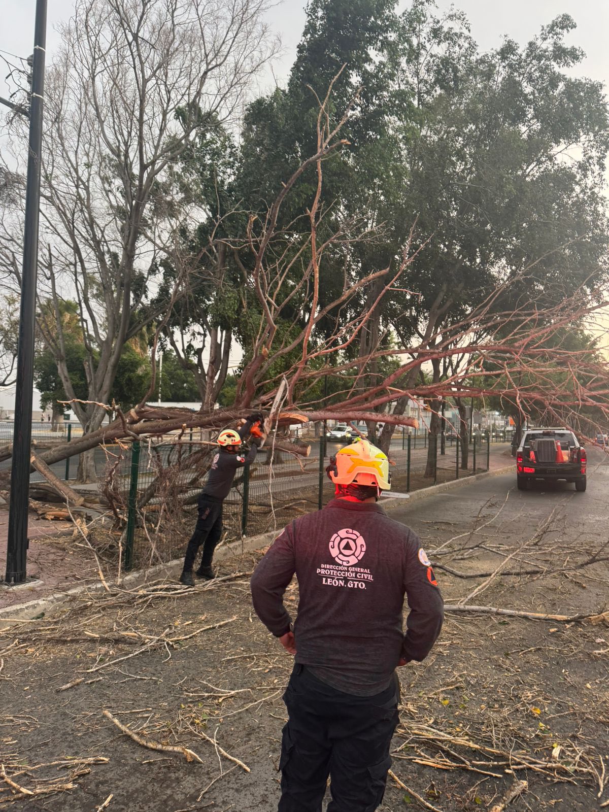 En León, miembros de Protección Civil y Policía Vial, brindaron atención y apoyo correspondiente debido a la lluvia registrada en la tarde de este miércoles, donde debido a la precipitación dejo un salgo de caída de árboles, fallas eléctricas en diversas colonias de la ciudad, así como unidades vehiculares durante y después de la lluvia.