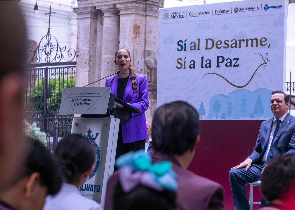 Durante el arranque de la campaña “Sí al Desarme, Sí a la Paz”, en donde participó la Gobernadora del estado de Guanajuato Libia Dennise con el objetivo de promover una cultura de paz y reducir los riegos relacionados con el ostento de armas de fuego en los hogares, la ceremonia se llevó a cabo frente al Santuario del Señor del Hospital, en el municipio de Salamanca, con el fin de reducir la portación ilegal de armas y evitar tragedias domésticas.