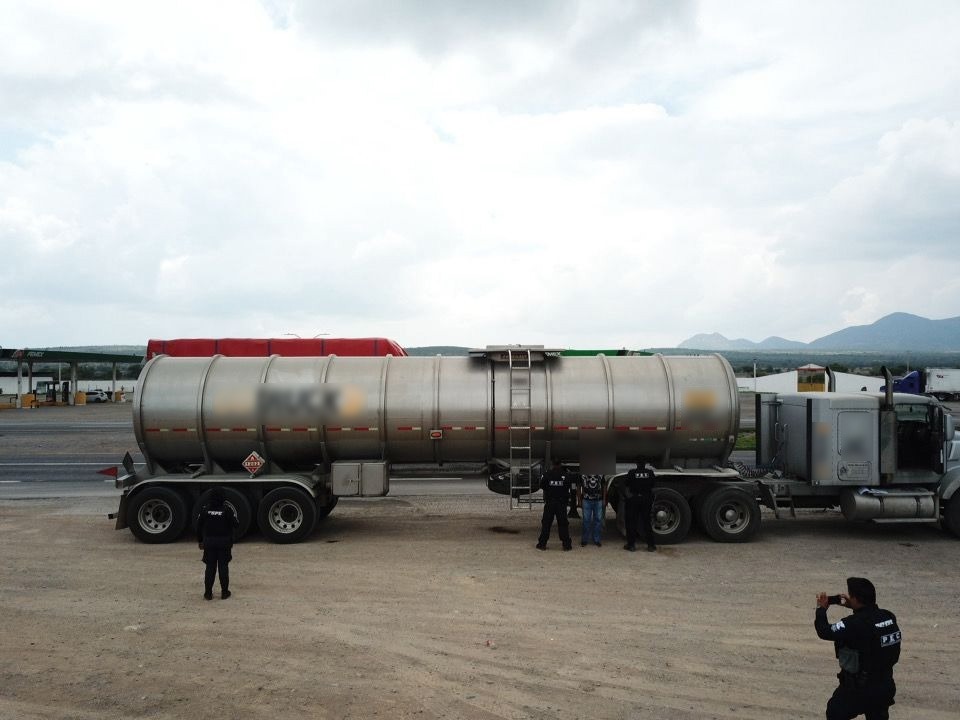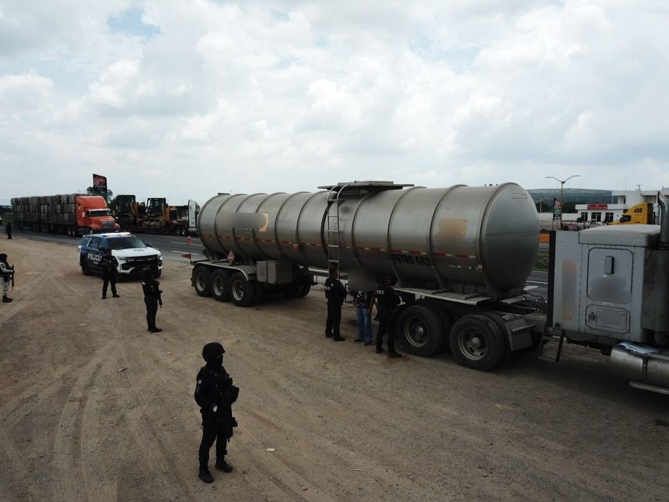 El personal de las Fuerzas de Seguridad Pública del Estado (FSPE) detectó un tracto camión acoplado a un remolque tipo tanque, al solicitar una inspección el conductor Víctor “N” presentó documentos con irregularidades conforme a la Ley Federal, por lo que él como la unidad vehicular fueron puestos a disposición de la Fiscalía General de la República con sede en San Miguel de Allende, para las investigaciones correspondientes.
