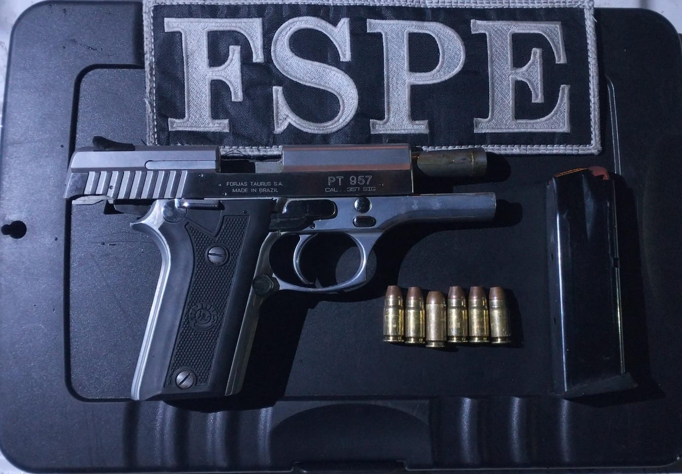 Durante la revisión fue localizada un arma corta calibre .357, de la marca Taurus, así como un cargador metálico con seis cartuchos útiles. Las tres personas a bordo fueron detenidas en ese momento y se procedió conforme a los protocolos de ley, incluyendo la lectura de derechos y el levantamiento de cadena de custodia de los objetos asegurados.