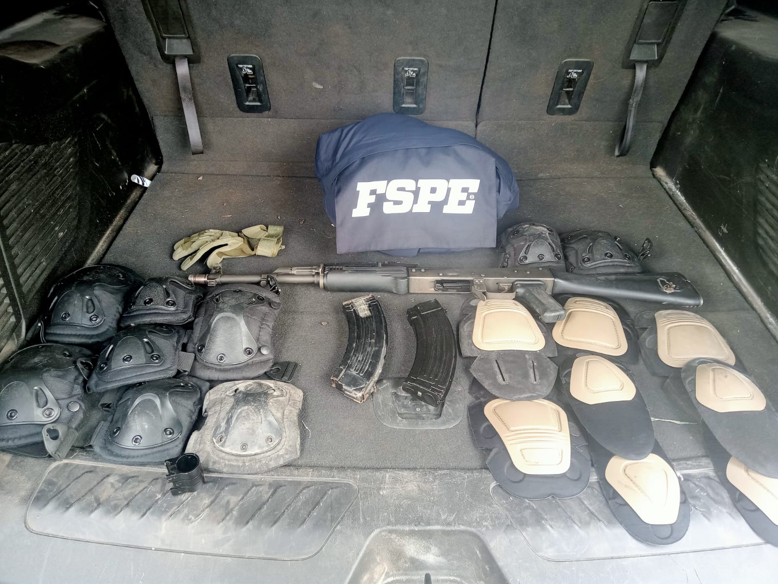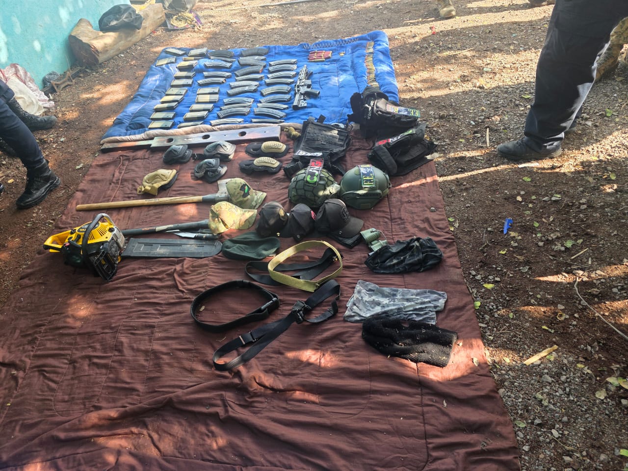 Durante la intervención, se han asegurado hasta el momento dos armas largas y un arma corta calibre .22 mm; más de 570 cartuchos útiles de distintos calibres y más de 40 cargadores; prendas, chalecos, cascos, botas y accesorios tácticos en cantidad significativa; además de un vehículo, hachas y una motosierra.