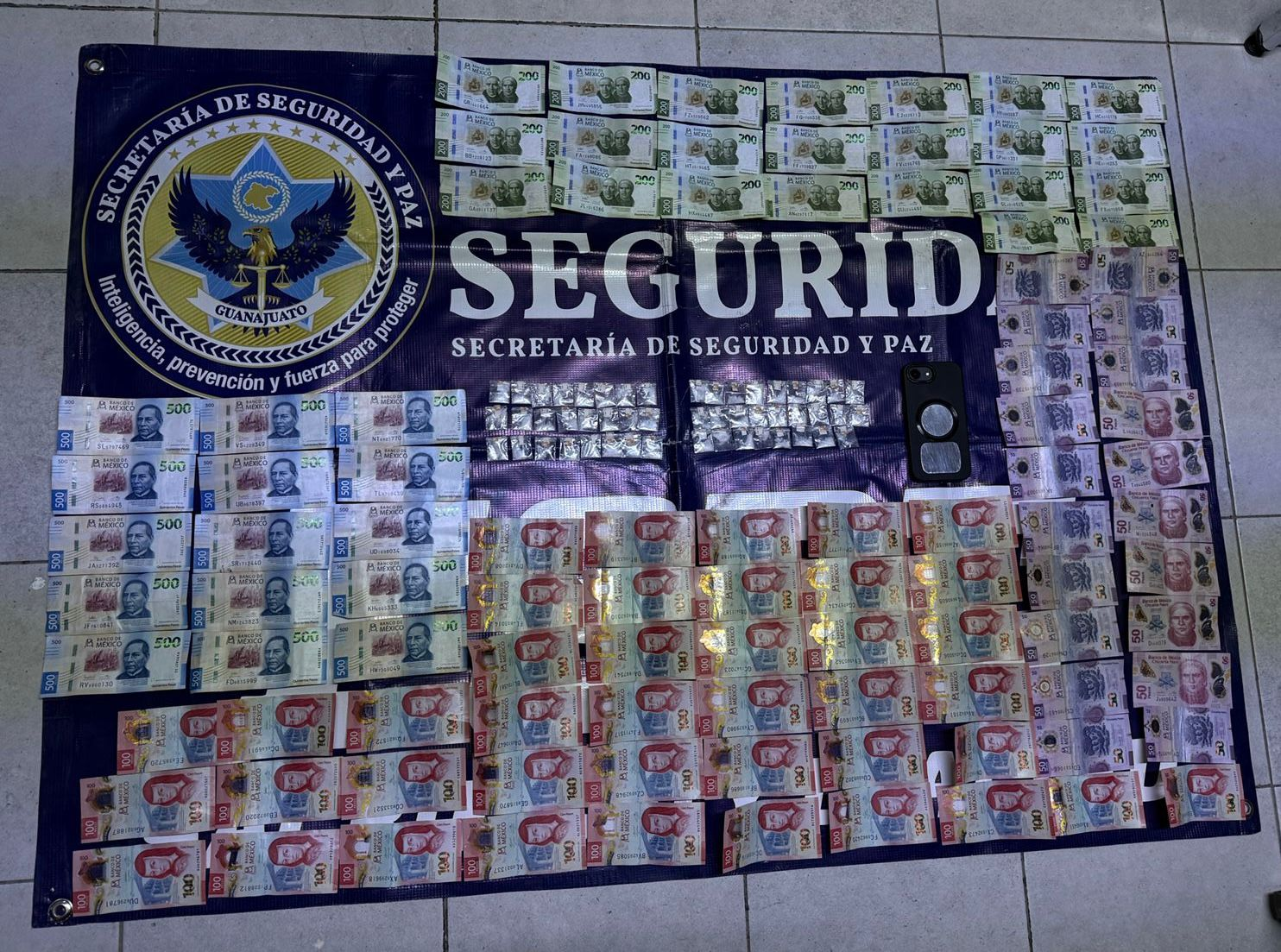 En el lugar fueron aseguradas 50 bolsas con un peso aproximado de 24 gramos, equivalentes a 72 dosis, así como 17 mil 200 pesos en efectivo y un teléfono celular.